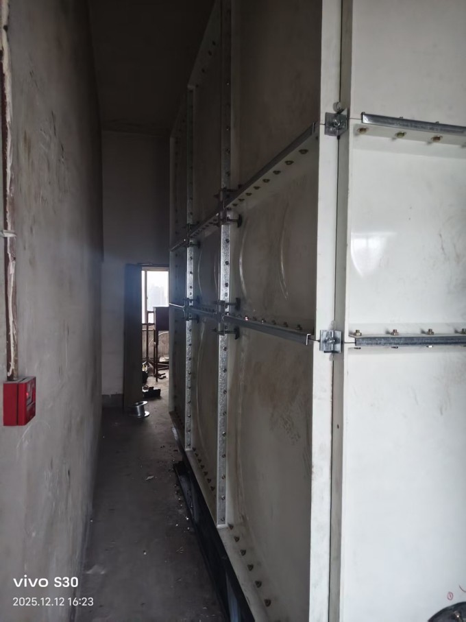 SMC水箱組裝就是用模壓的小塊,到施工現(xiàn)場(chǎng)組裝成大的水箱。外面要用角鋼進(jìn)行固定的,角鋼搭出個(gè)水箱模型,在上面鋪玻璃鋼平板,拼縫處再現(xiàn)場(chǎng)多糊幾層方格布...
